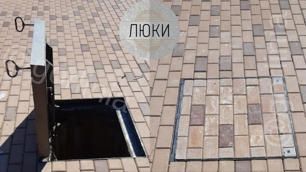 Привязка к габариту 80х80 не случайна: так легче вписать раму в линии мощения тротуарной плиткой. Рекомендуем ориентироваться на посадочный размер, потому что при укладке внутрь ляды крайние кирпичи все равно придется подрезать - углы скошены на конус на 110° для бесконтактного открывания на шарнирах.